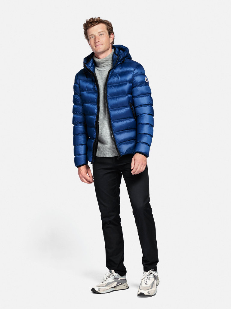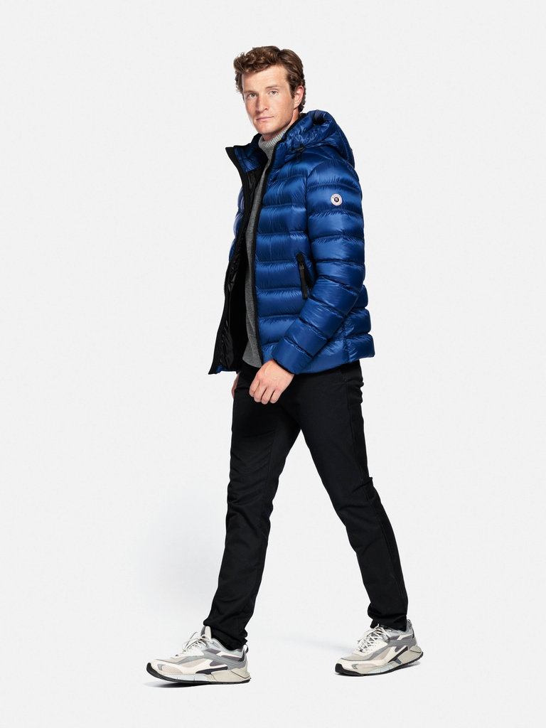 Eine moderne und originelle Pufferjacke, die sich selbst für die kältesten Tage perfekt eignet. Gesteppt, aus leichtem Nylon, mit kontrastierenden Details, gefüllt mit Daunen. Trotzen Sie der Kälte mit Stil!