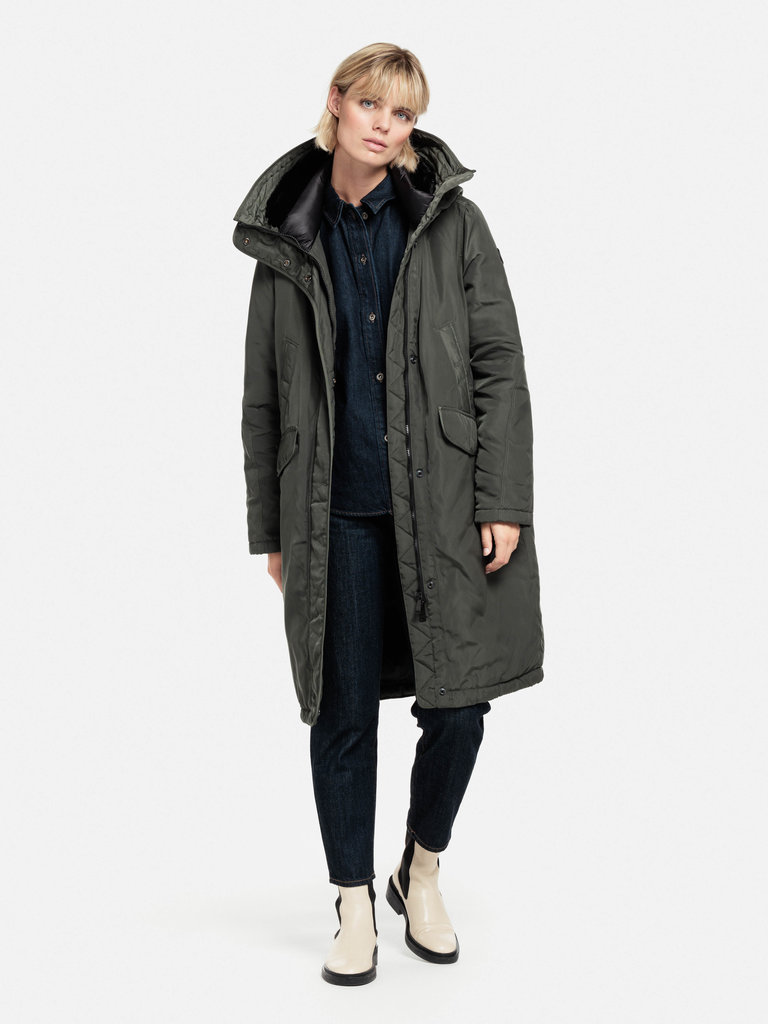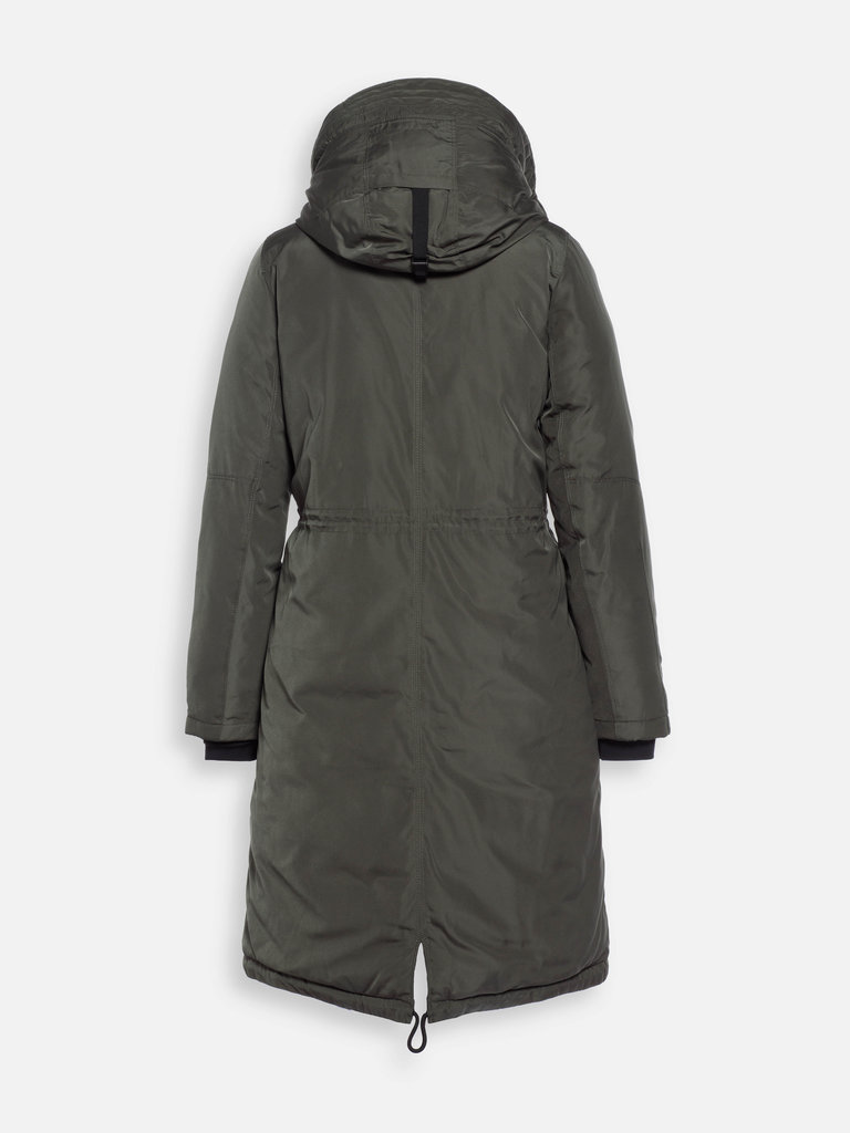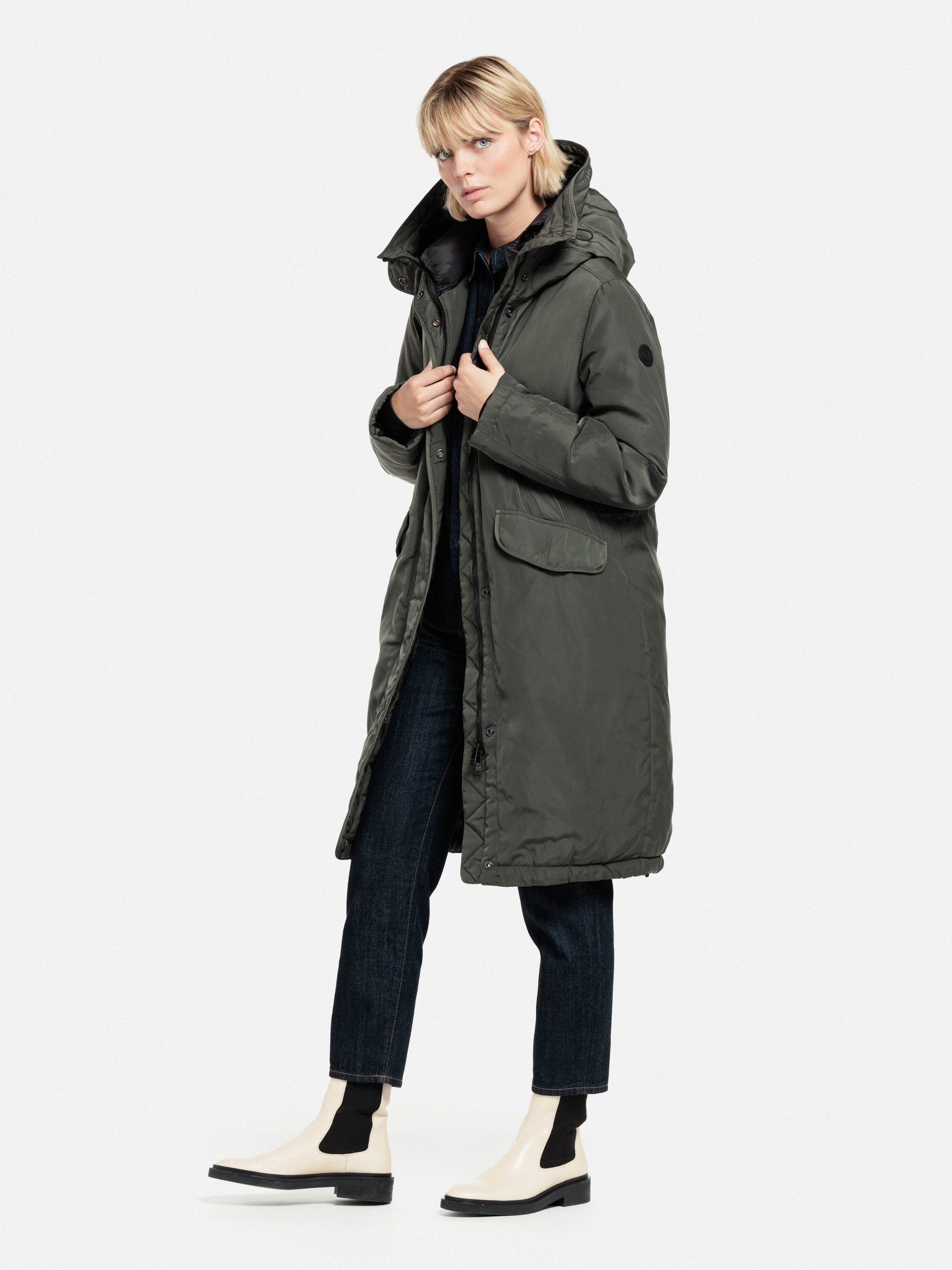 PISA is een oversized parka gemaakt van een mooie oxford stof. Met de verstelbare taille kan je de pasvorm aanpassen en de wind buiten houden en het imi bont in de capuchon geeft een comfortabel gevoel.
