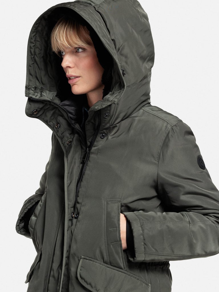 - Vaste capuchon met verstelbare rand met gevoerd met uitneembaar imi bont